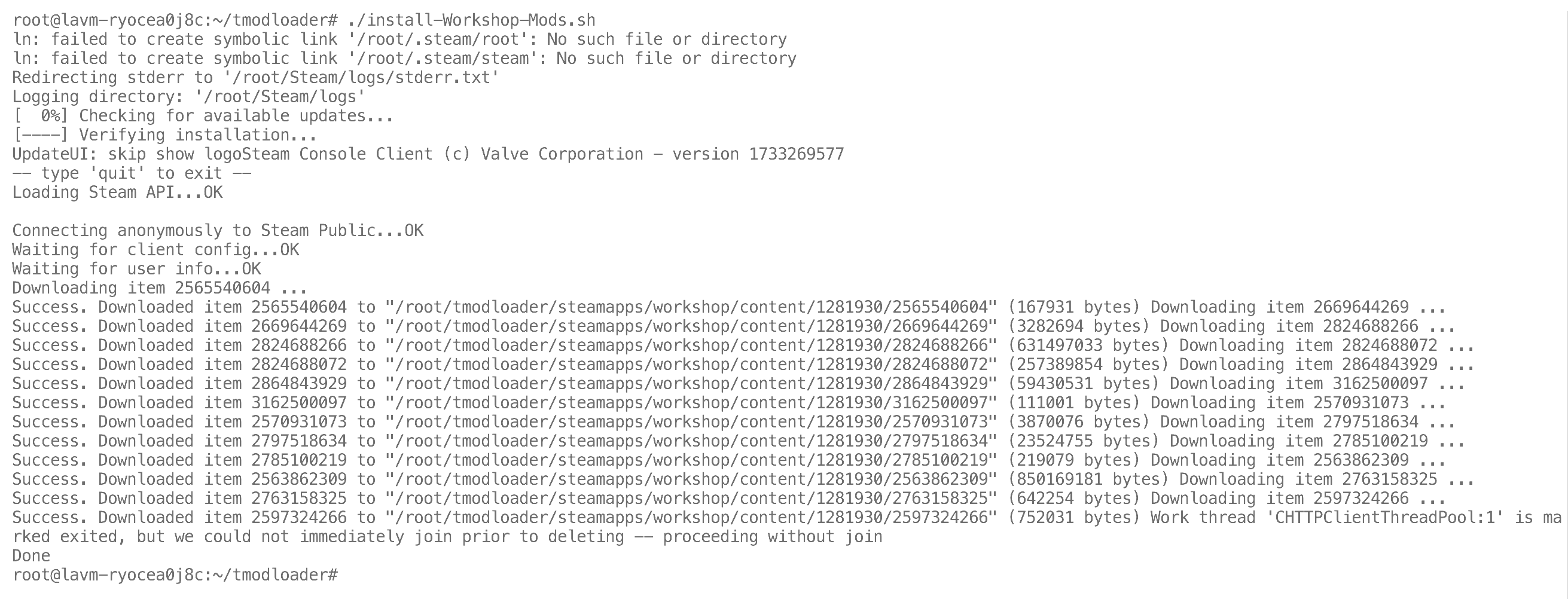 steamcmd_command="$steamcmd_command +workshop_download_item 1281930 $line"