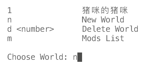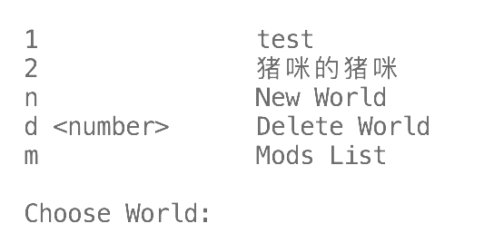 输入对应的世界编号回车