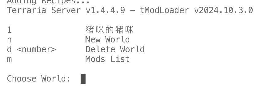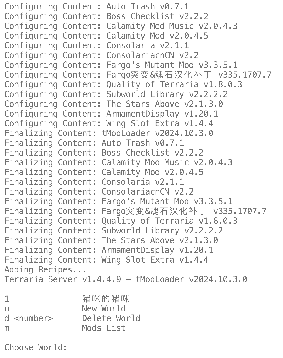 到此你已经完成了tModLoader服务器的搭建