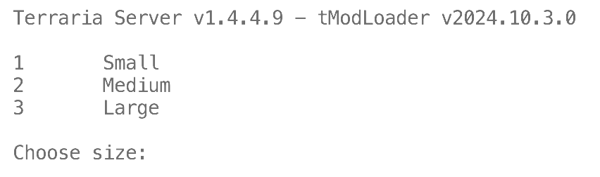 选择世界大小,输入的对应编号回车,1为小世界,2为中世界,3为大世界