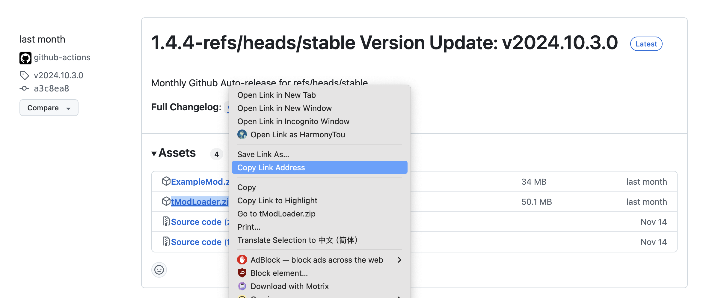 进入tModLoader的releases