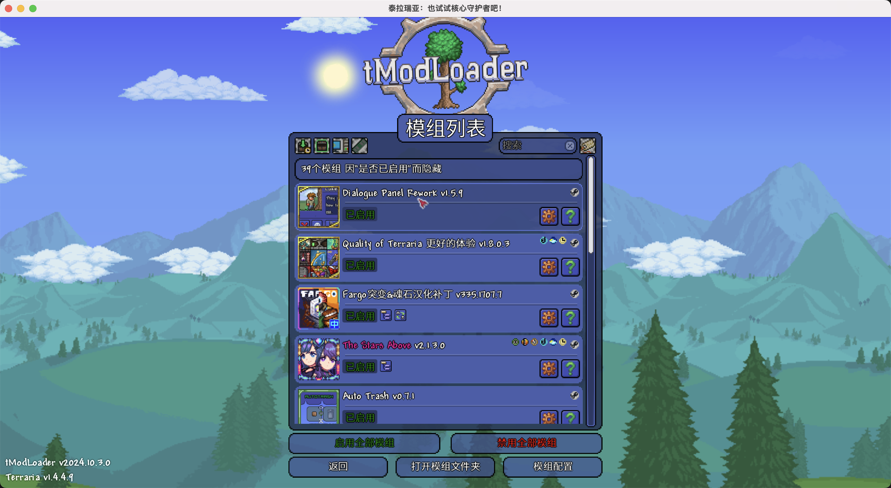 打开你的tModLoader,确保你启用并且加载你要游玩的模组后